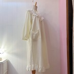 首回りやデコルテ部分にはお花の刺繍の入った白色のコットンレースの装飾。