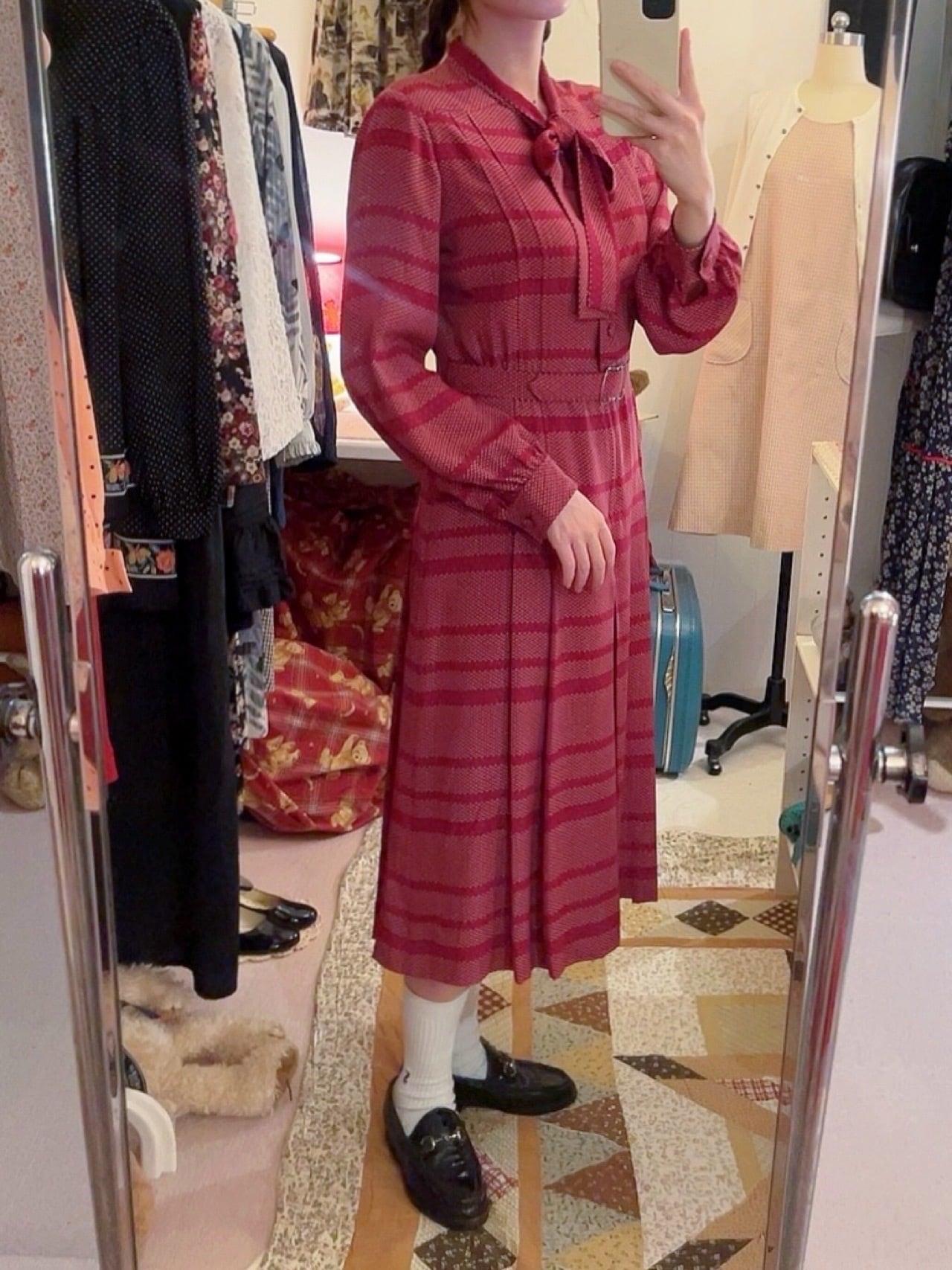 上品な赤色のレトロワンピース。
