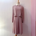 淡いピンクと薄青緑色のチェック柄ワンピース。