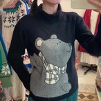 カステルバジャックのマフラーを巻いたくまさんタートルニット。