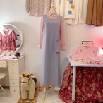淡いグレーのジャンパースカート。