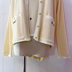 カーディガンの首まわりとポケットには、木や犬、家などの小さなモチーフ刺繍が施されており、インナーの半袖ニットには総柄の刺繍があしらわれています。
