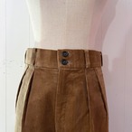フロントにはセンタープレスが入っており、カジュアルなコーデュロイ素材ながらもすっきりとした印象に。