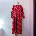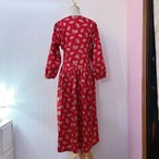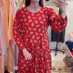 ペイズリーと小さなドット柄の赤色ワンピース。