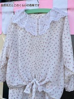 ひらひらとした大きなレース襟が付いており後ろ側までたっぷりとあしらわれています。