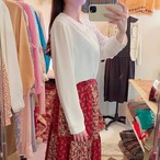 ひらひらとした襟周りには、チューリップやリボンの刺繍が施されており、どこか懐かしさのある繊細でレトロなデザイン。