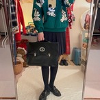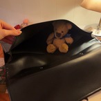 キューピーのワッペンのついた黒色サッチェルバッグ。