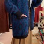 黒地にエメラルドグリーンやパープルのレトロなダイヤ柄。